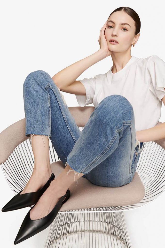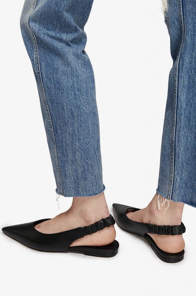 Pentru mica vară din octombrie, care permite purtarea pantofilor mai decupați, m-am gândit la balerinii cu vârful ascuțit din piele. O pereche pe care o am în vizor de mai mult timp este cea cu călcâiul decupat de la Anine Bing.