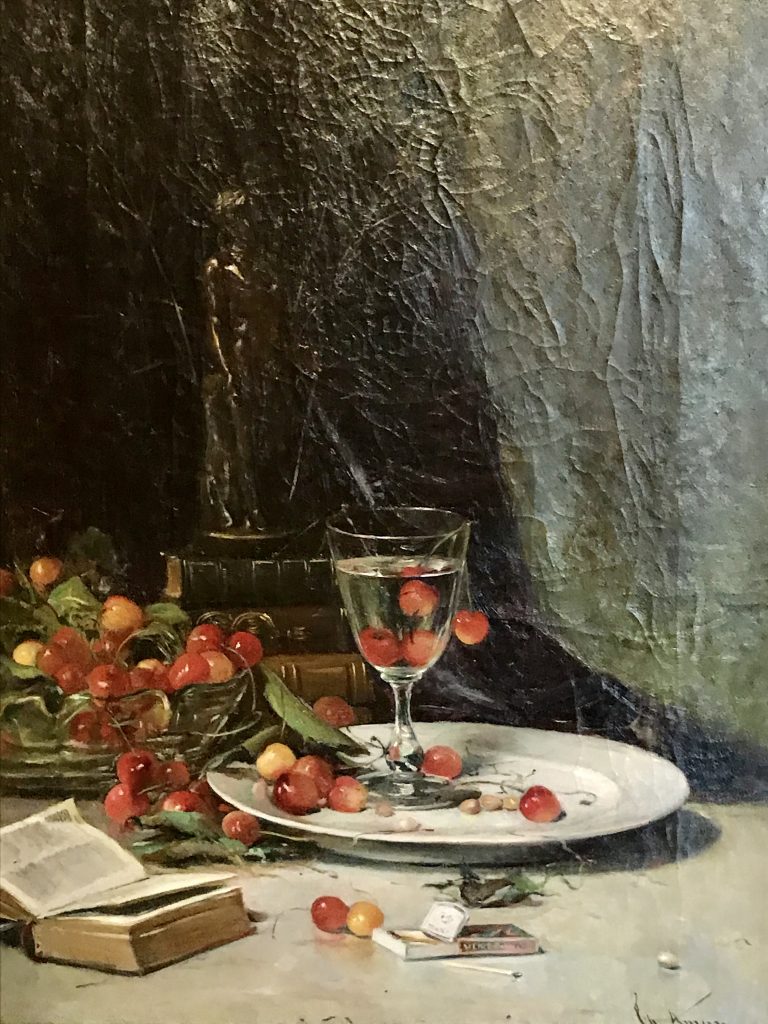 Cel mai mult cred că mi-a plăcut totuși încăperea cu flori și fructe și cu pereți într-un roz cald, primitor. Am admirat timp îndelungat veridicitatea cireșelor, a pepenelui roșu care părea proaspăt tăiat și a florilor delicate, în nuanțe calde.