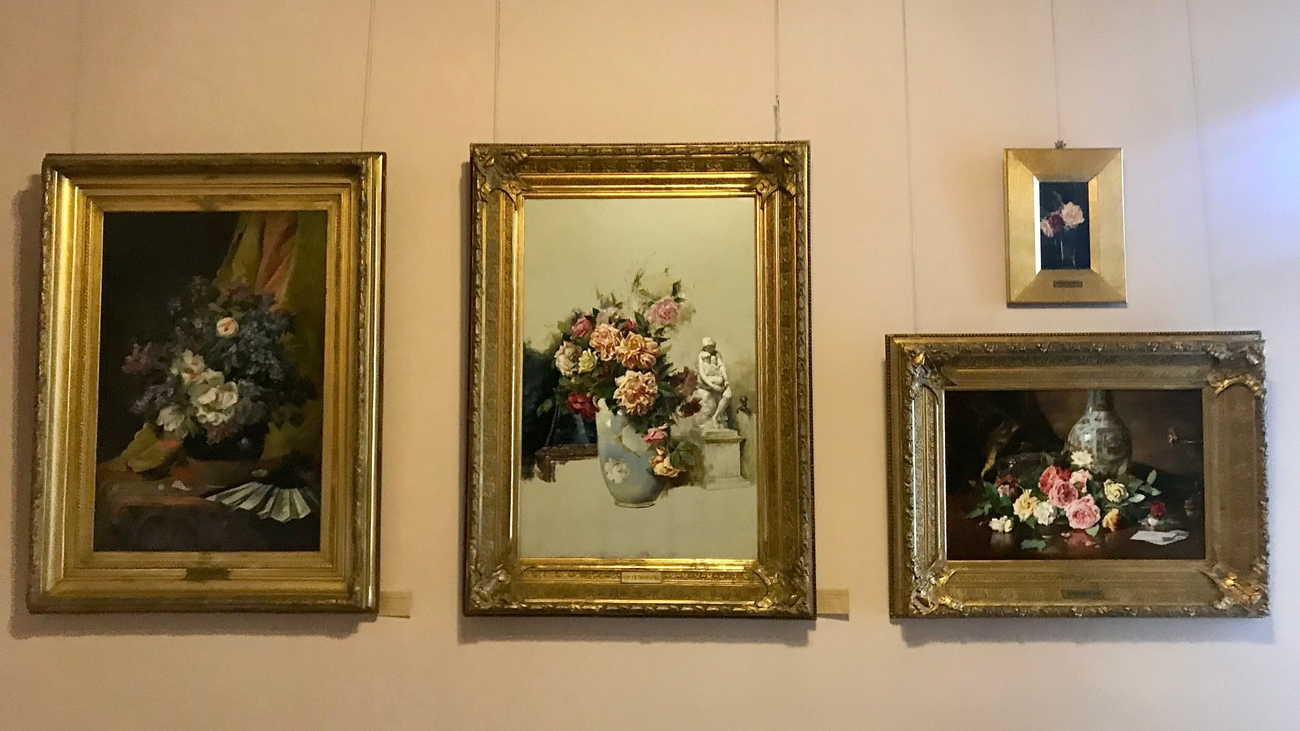 Cel mai mult cred că mi-a plăcut totuși încăperea cu flori și fructe și cu pereți într-un roz cald, primitor. Am admirat timp îndelungat veridicitatea cireșelor, a pepenelui roșu care părea proaspăt tăiat și a florilor delicate, în nuanțe calde.