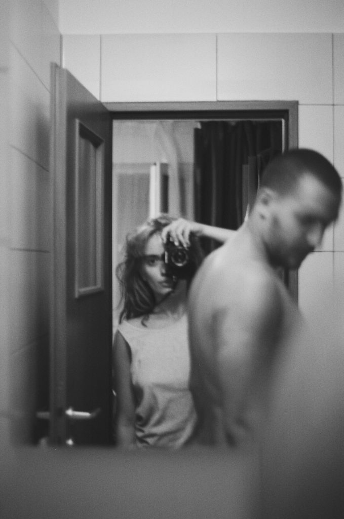 Bărbia îi e mereu îndreptată înspre față. Nu mai stă de mult drept. Genunchii ei caută podeaua și se dezechilibrează constant. Ochii ei caută. Se teme. E la vârsta la care nici amintirile nu o mai alină. Ochii ei plâng și se fac tot mai mici.