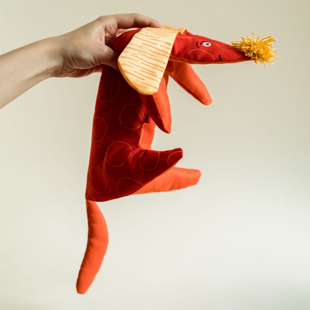 Câinele Tapir– Pe câinele ăsta îl cheamă Tapir. E din familie cu tradiție, i-au pus numele după tatăl lui. Așa îl prezint de obicei. Povestea lui este un pic mai personală însă. Când eram mică, am avut un câine de jucărie tot cu urechi lungi și bot care mătură podeaua. Îl purtam peste tot cu mine, îl duceam în lesă și-i dădeam de mâncare (da, da, mâncare adevărată). Am făcut asta până când a devenit atât de ponosit încât adulții de lângă mine au decis că e momentul de pensionare. Bineînțeles că mi s-a părut o decizie injustă, așa că ani mai târziu i-am creat un urmaș așa cum mi-a rămas în amintire.