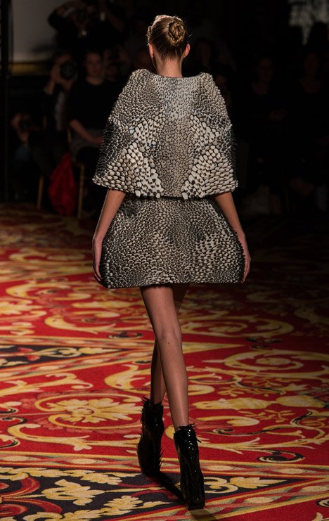 În cadrul colecției designer-ului Iris van Herpen, prezentată în 2013 la Săptămâna Modei din Paris, a fost inclusă o piesă vestimentară printată 3D și realizată în colaborare cu Neri Oxman. „Posibilitățile incredibile oferite de aceste noi tehnologii ne-au permis să reinterpretăm tradiția couture-ului ca tech-couture în care broderia delicată realizată manual și acul sunt înlocuite de cod. Abilitatea de a varia moliciunea și elasticitatea ne-a inspirat să proiectăm nu numai forma hainei, ci și mișcarea acesteia”, ne împărtășește ea.