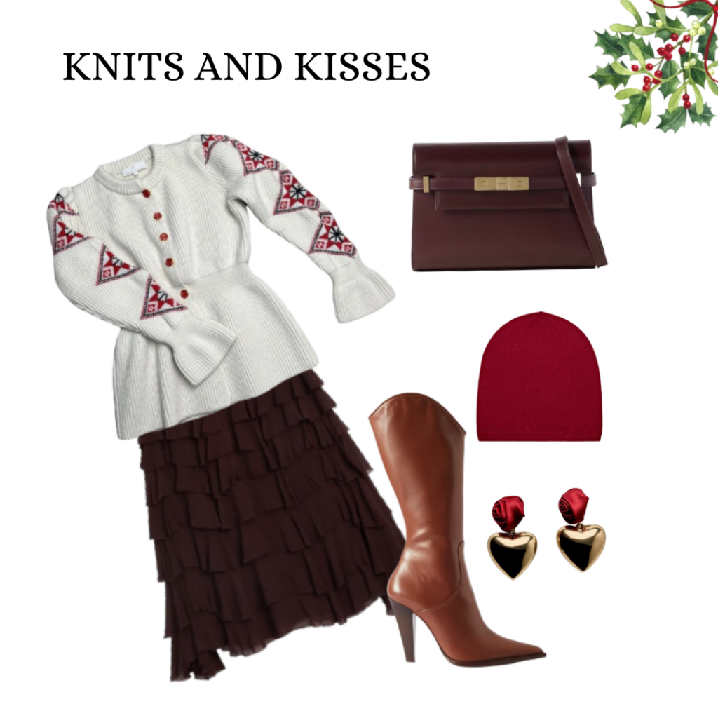 Este ținuta care surprinde armonios aerul tău boem și, în același timp, confortul și simplitatea cu bun gust. Nuanțele de maro sau burgund pot fi alternativa clasicului roșu întâlnit în prag de sărbătoare. Combinația cardiganului cu motive tradiționale, fustă plisată, cizme din piele și piese complementare, aduc un accent romantic dar și rustic ținutei.