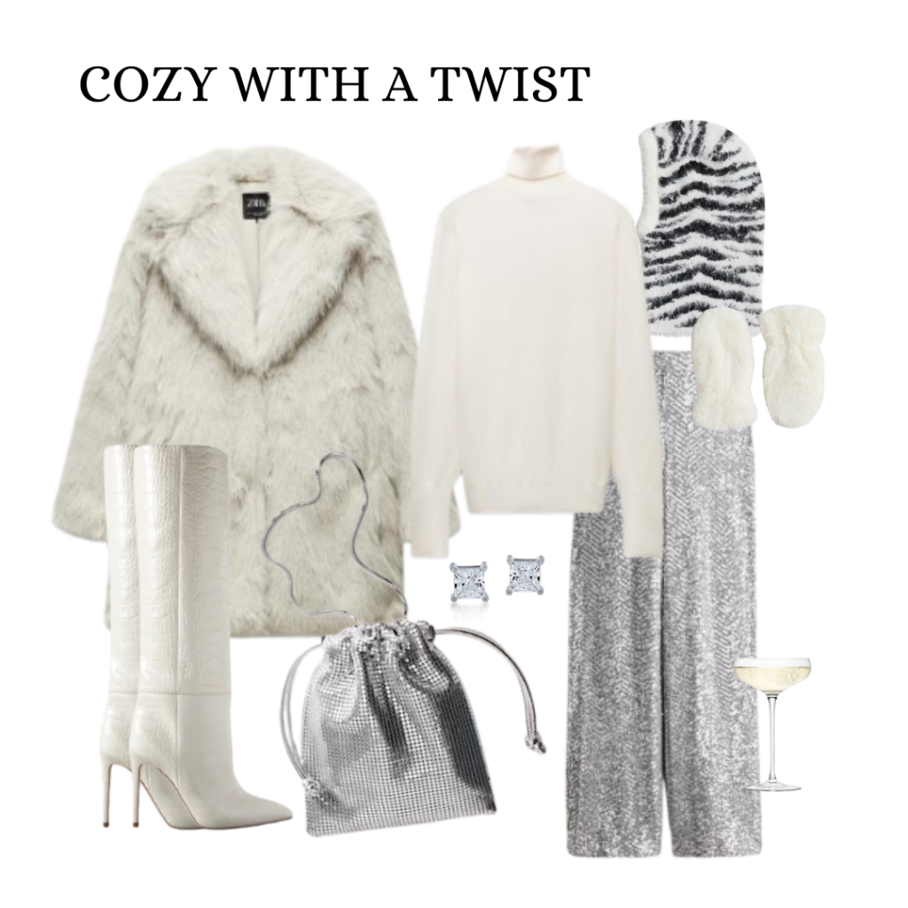 Fii îndrăzneață și combină confortul cu glamour-ul, așa cum a făcut-o Carrie Bradshaw în primul film Sex and The City în noaptea dintre ani. Este look-ul optim atunci când literalmente pășești în noul an, în aer liber, păstrându-te călduroasă printr-un palton și mănuși cu efect de blană, helancă, balaclava, dar și strălucitoare prin componente metalice și paiete.